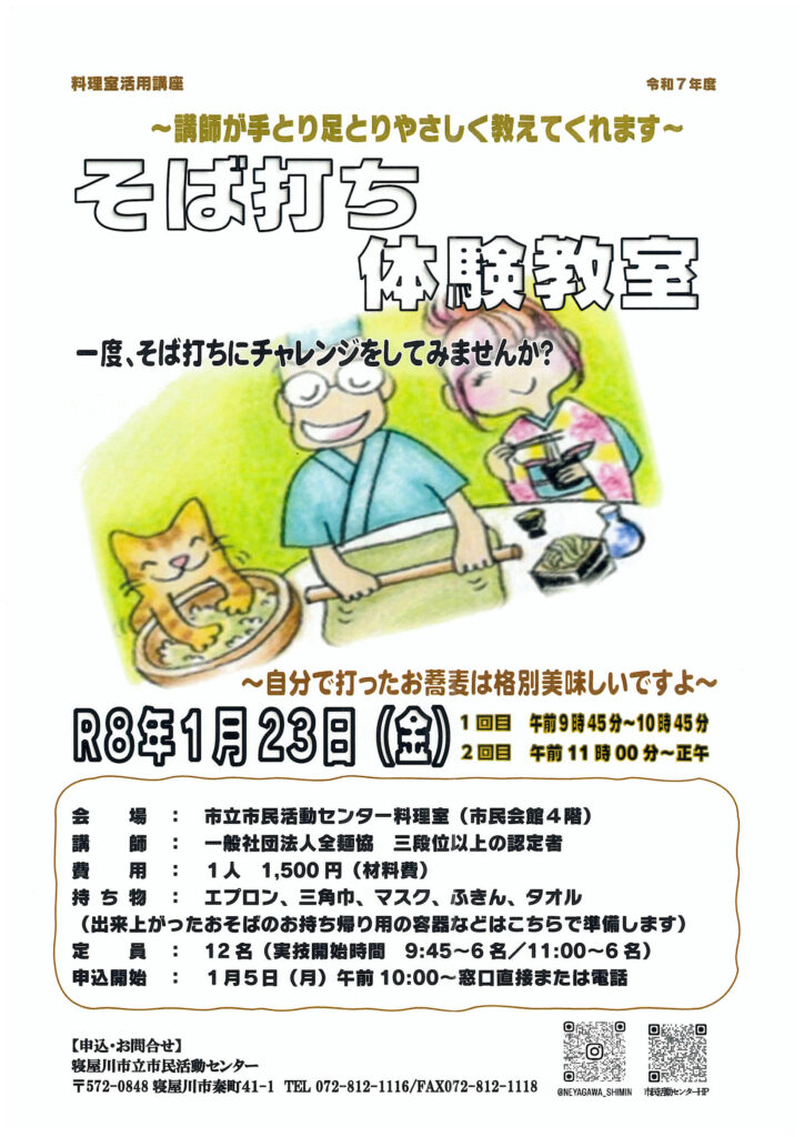 🍲🍲【料理室活用講座】そば打ち体験教室🍲🍲